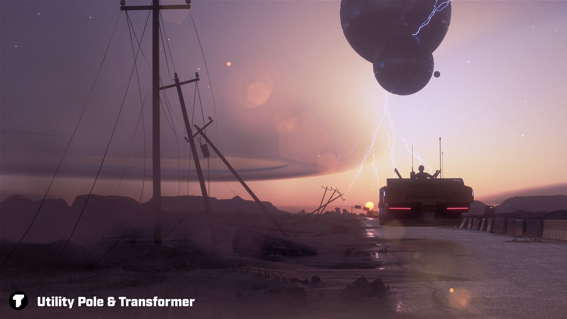 Poles used in a cyberpunk scene.